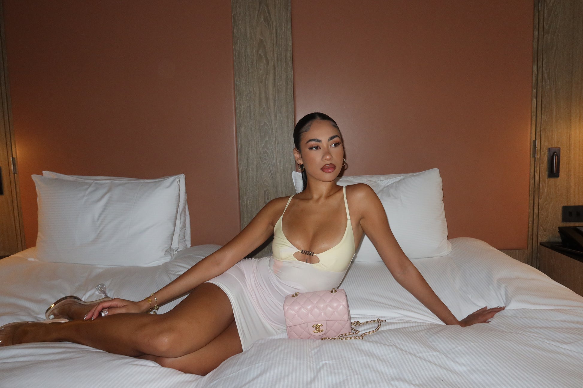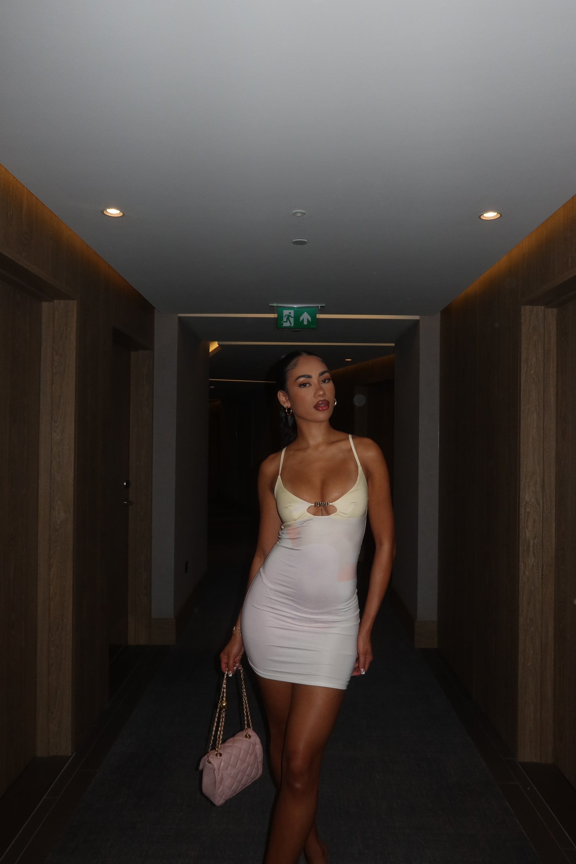 Step into the spotlight with the Aura Mini Dress, a figure-hugging masterpiece designed to make you the main character wherever you go.